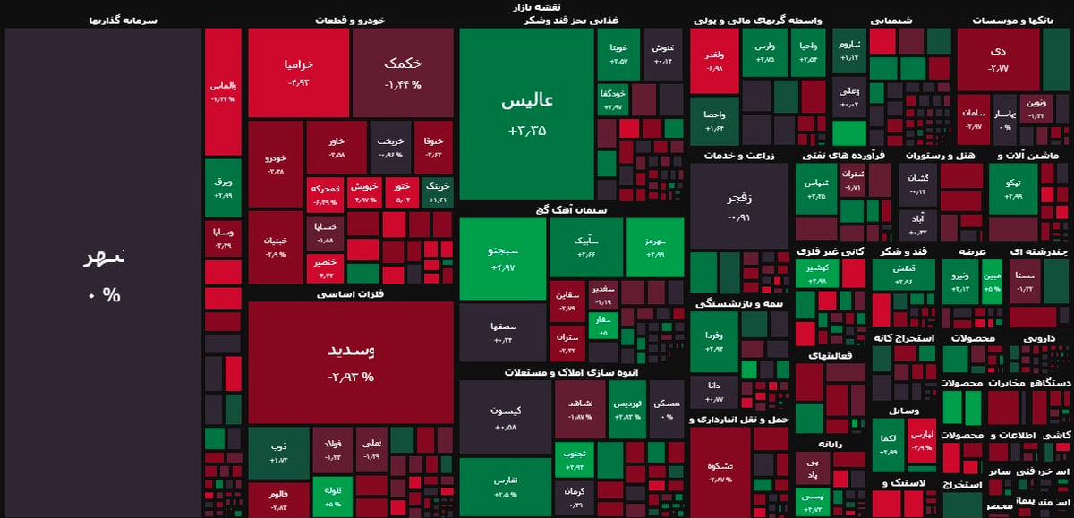 شاخص هم وزن نیز تا این لحظه عملکردی مشابه شاخص کل داشته است و با افت ۰.۱ درصدی به سطح ۷۴۵ هزار واحدی رسیده است.