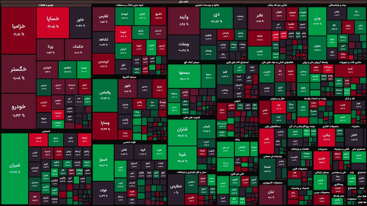 نمادهای خساپا و خودرو بیشترین تاثیر منفی را بر روی شاخص و نماد شپنا و شتران بیشترین تاثیر مثبت را بر روی شاخص کل گذاشتند.