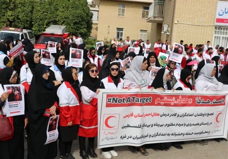 تجمع امدادگران هلال‌احمر فارس در دفاع از فلسطین/ جنایات اسرائیل محکوم شد + تصویر