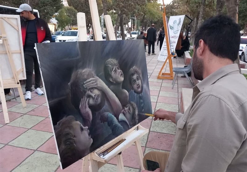 نمایش مظلومیت کودکان غزه با زبان نقاشی در کرمانشاه + تصویر