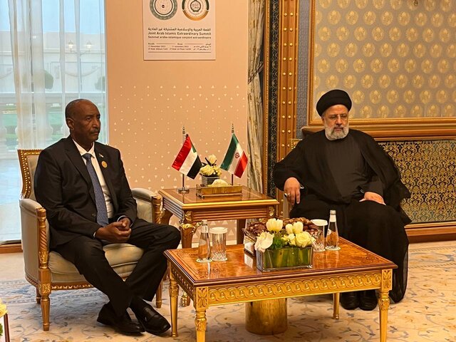 به گزارش ایسنا، سید ابراهیم رئیسی بعد از ظهر امروز (شنبه ۲۰ آبان ۱۴۰۲) در حاشیه نشست مشترک سازمان همکاری اسلامی و اتحادیه عرب در ریاض عربستان، در دیدار «عبدالفتاح برهان» رئیس شورای حکومتی سودان ضمن ابراز خوشحالی از دیدار با وی، آمادگی کشورمان را برای تبادل هیئتهای دیپلماتیک و گسترش روابط در عرصههای مختلف با این کشور اعلام کرد.