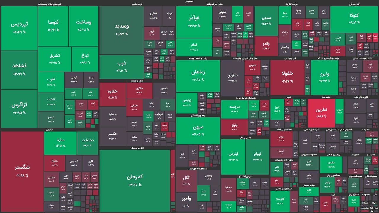 ارزش کل معاملات امروز بورس تهران تا این لحظه ۶ هزار و ۷۴۵ میلیارد ریال بوده و نمادهای ذوب و ونیرو بیشترین تاثیر مثبت و نمادهای فملی و شپنا بیشترین تاثیر منفی را بر بازار داشتند.
