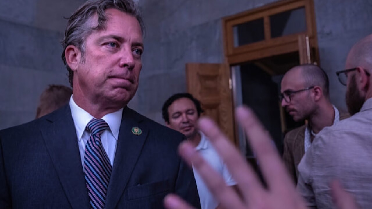 یک فعال حامی فلسطین که چفیهای بر دوش دارد، به «اندی اوگلز» سیاستمدار جمهوریخواه مجلس نمایندگان آمریکا نزدیک میشود تا نسبت به کشتار کودکان بیگناه فلسطینی در نوار غزه اعتراض کند که با صحبتهای تهوعآور او مواجه میشود.