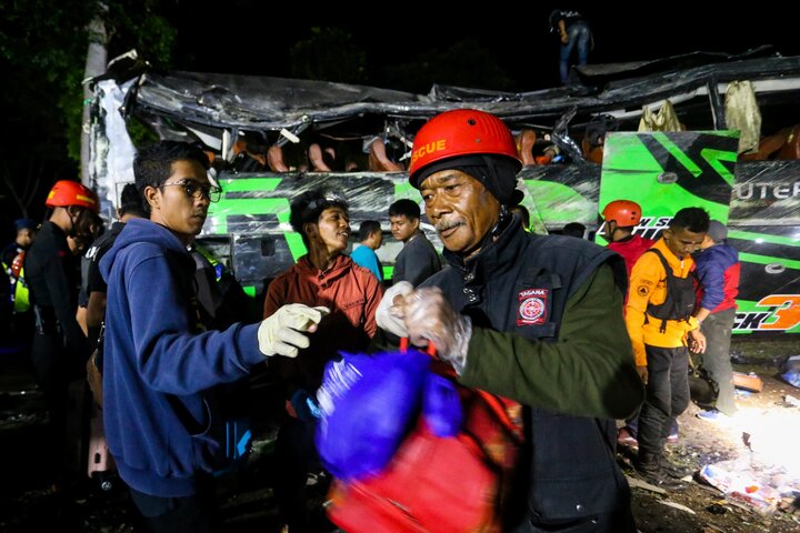 تصادف مرگبار در اندونزی/اتوبوس ترمز برید؛ ۱۱ دانشآموز جان باختند
