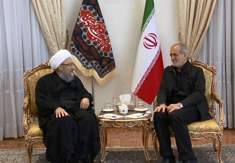پزشکیان نیز در این دیدار ضمن تشکر از رئیس مجمع تشخیص مصلحت نظام همافزایی، هماهنگی و تعامل همه نهادهای کشور را از ملزومات پیشرفت کشور دانست.