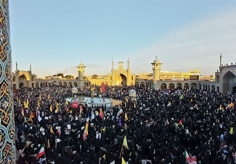 خیابانهای اطراف حرم مملو از مردمی بود که با چشمانی اشکبار و دلهایی آکنده از غم، شعارهای ضد استکباری سر داده و حمایت خود را از مقاومت اسلامی اعلام کردند.