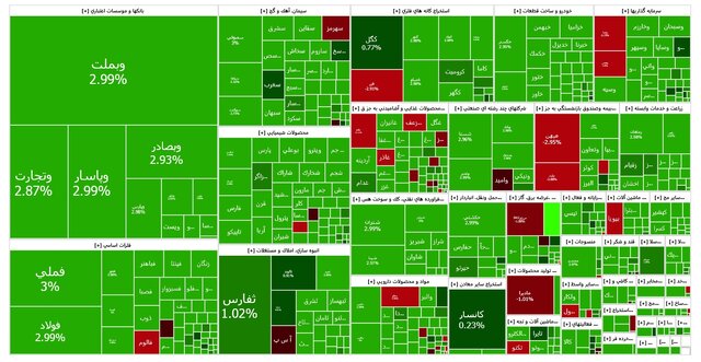 تا ساعت ۱۰:۴۵ شاخص کل بورس اوراق بهادار تهران ۵۰ هزار واحد رشد کرد. شاخص هم وزن نیز با افزایش ۱۰ هزار واحد مواجه شد. فرابورس نیز رشد ۲۲۲ واحد داشت.