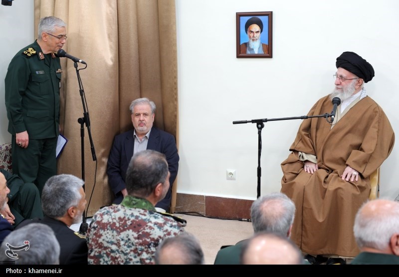 حالا گزارش سردارِ رئیس ستاد هم در چنین زمینهای قابل فهم است. گزارش سردار باقری که تمام میشود نوبت بیانات آقاست. مطایبهای با سردار میکنند که محورهایتان 12 تا بود یا 14 تا؟! رفت و برگشتی مزاحگونه صورت میگیرد و جمع خندهی نمکینی میکنند.