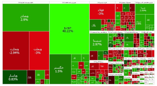 امروز اما در چهارمین روز کاری هفته شاخص کل بورس اوراق بهادار تهران ۳۶۵۹ واحد افت کرد و به رقم ۳ میلیون و ۱۳۲ هزار و ۶۳۲ واحد رسید. با این حال عمده نمادهای گروه نفت و همچنین خودرو تحت تاثیر مذاکرات و افزایش سرمایه ایرانخودرو و سایپا رشد کردند. نماد خودرو از پایان سال گذشته به دلیل برگزاری مجمع فوقالعاده افزایش سرمایه متوقف شده بود امروز ۴۰ واحد بالاتر از قیمت صفر تابلو بازگشایی شد.