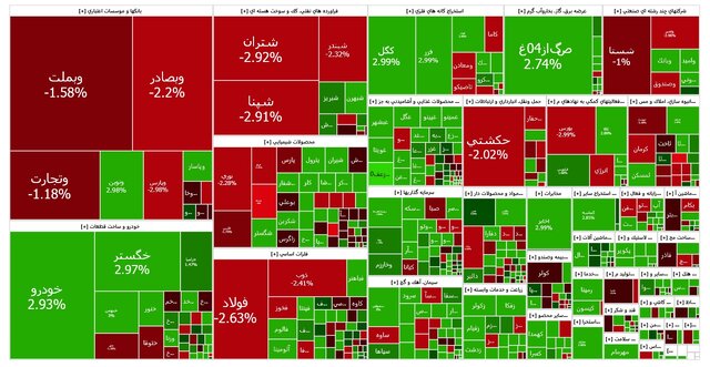 فارس، فولاد و نوری بیشترین تاثیر منفی را بر شاخص بورس داشتند. از نمادهای پرتراکنش نیز میتوان به خودرو، وبصادر و وبملت اشاره کرد.
