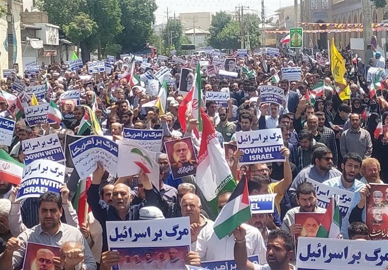 راهپیمایان با در دست داشتن پلاکاردهایی با مضامینی همچون «مرگ بر اسرائیل»، «مرگ بر آمریکا» و «انتقام، حق ملت ایران» خشم خود را از این جنایت ابراز داشتند و از مسئولان خواستند که پاسخ این تجاوز را با قدرت و قاطعیت بدهند.