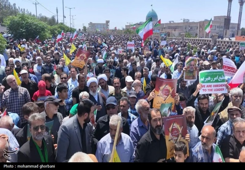 مردم همیشه در صحنه خراسان جنوبی در تجمعات و راهپیماییها با سردادن شعارهایی چون «مرگ بر اسرائیل»، «مرگ بر آمریکا»، «انتقام خون شهدا را خواهیم گرفت» و «ای رهبر آزاده، آمادهایم آماده» بر عزم راسخ خود برای مقابله با جنایات رژیم صهیونیستی و ایستادگی در برابر دشمنان اسلام تاکید کردند.