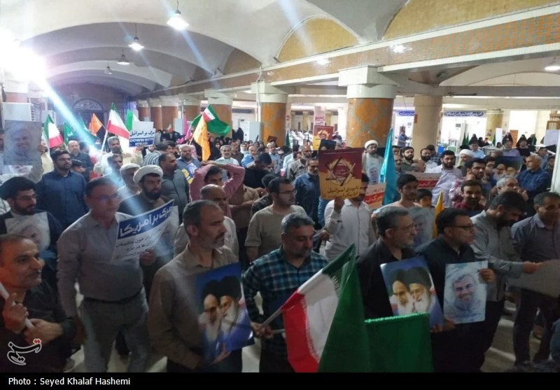 تجمعکنندگان در این مراسم با شعار مرگ بر آمریکا، مرگ بر اسرائیل، ما پیرو رهبر فرزانهایم – برای جنگ آخر آمادهایم ، رژیم صهیونی رو به زوال است – سازش ما با صهیونیست محال است و وحدت ما مایه اقتدار است – لا تهنوا، زمان کارزار است ضمن محکوم کردن جنایات رژیم صهیونیستی با حمایت ترامپ رئیس جمهور آمریکا خواستار تداوم حملات نیروهای مسلح جمهوری اسلامی به سرزمینهای اشغال تا نابودی این رژیم جعلی شدند.