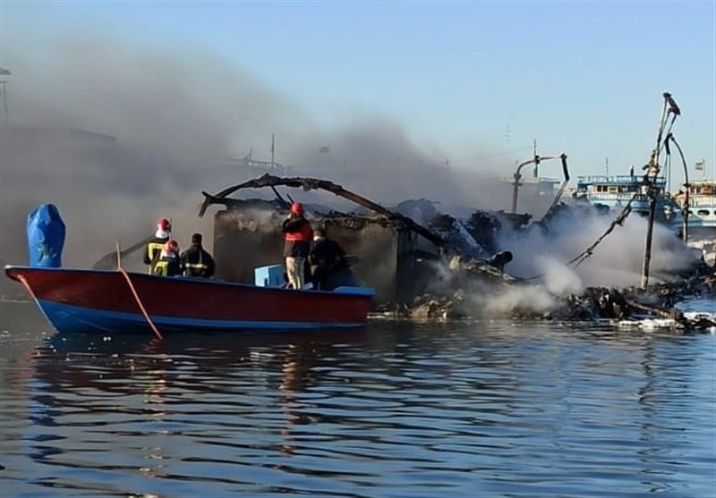 حریق در اسکله سیریک/ چندین لنج در آتش سوخت