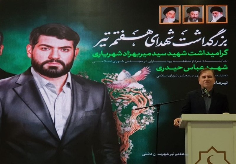 به گزارش بخش استانها در وبانگاه به نقل از خبرگزاری تسنیم از دشتی، ارسلان زارع استاندار بوشهر عصر امروز در آیین مراسم بزرگداشت شهدای هفتم تیر شهیدان عباس حیدری و میر بهزاد شهریاری نمایندگان استان در مجلس با گرامیداشت یاد و خاطره شهدای گرانقدر گفت: انقلاب اسلامی ایران بر پایه ایدئولوژی توحیدی و نفی حکومت طاغوت و با اراده لایزال الهی و حمایت باریتعالی و با مشارکت آحاد مردم و با رهبریهای داهیانه بنیانگذار جمهوری اسلامی ایران حضرت امام خمینی (ره) به پیروزی رسید.