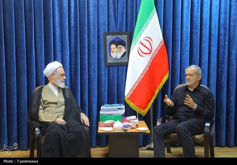 به گزارش بخش استانها در وبانگاه به نقل از خبرگزاری تسنیم از قم، مسعود پزشکیان عصر امروز (چهارشنبه یکم مرداد 1404) در جریان سفر سرزده به قم و در ادامه برنامههای خود با حضور در دفتر مدیریت حوزههای علمیه کشور، با آیت الله اعرافی دیدار و گفتگو کرد.