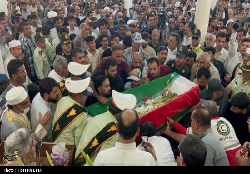 این مراسم که با حضور رئیس کل دادگستری استان بوشهر، فرمانده منطقه دوم نیروی دریایی سپاه، فرمانده مرزبانی استان و دیگر فرماندهان و مسئولان استان بوشهر برگزار شد شرکتکنندگان با شعارهای مرگ بر اسرائیل، مرگ بر آمریکا، حسین حسین شعار ماست شهادت افتخار ماست و اهل کوفه نیستم علی تنها بماند از این شهید والامقام استقبال کردند.