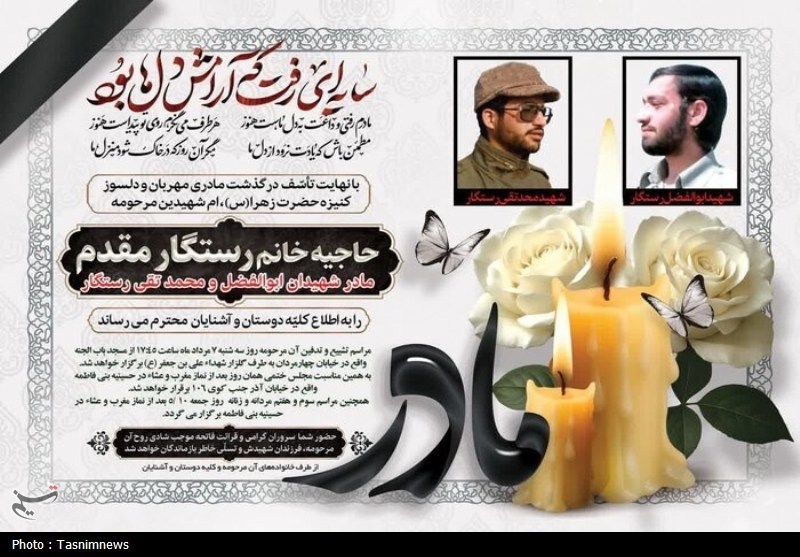 به گزارش بخش استانها در وبانگاه به نقل از خبرگزاری تسنیم از قم، مادر محمدتقی رستگارمقدم، یکی از چهار دیپلمات ربودهشده ایرانی در لبنان، پس از چهار دهه چشمانتظاری برای بازگشت فرزندش، دارفانی را وداع گفت.