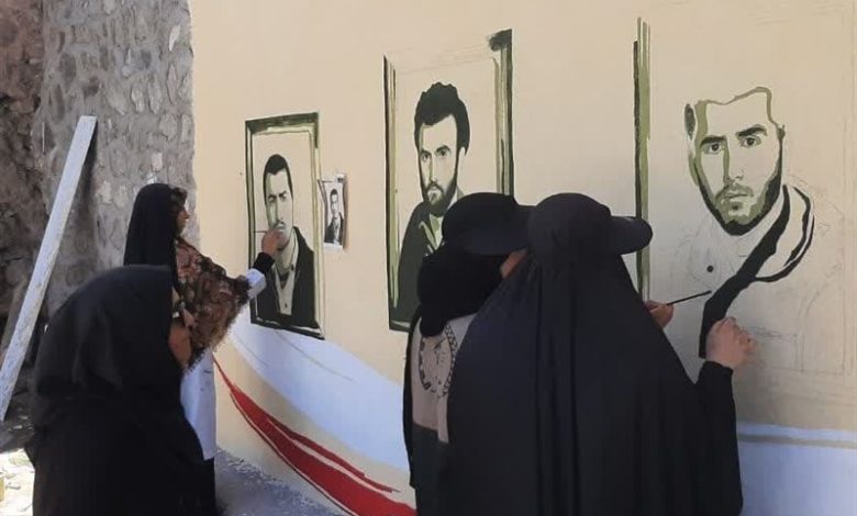 نقاشی دیواری روستاهای الموت با تصاویر شهدا