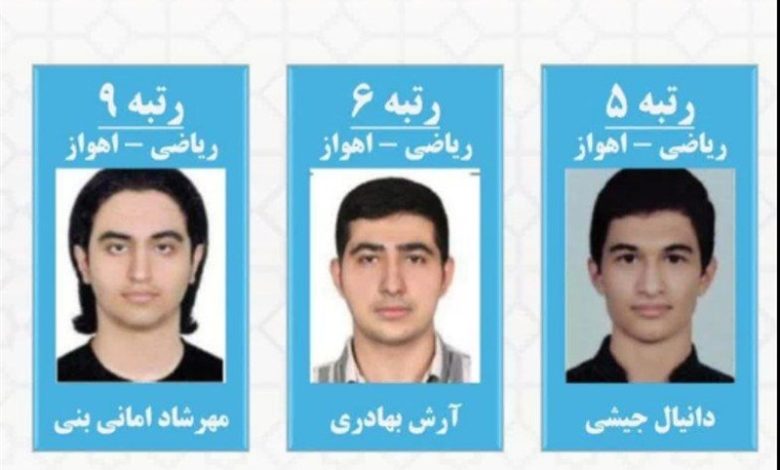 لازم به ذکر است؛ سه دانشآموز اهوازی به نامهای دانیال جیشی، آرش بهادری و مهرشاد امانیبنی موفق به کسب رتبههای پنجم، ششم و نهم در گروه آزمایشی علوم ریاضی و فنی شدند.