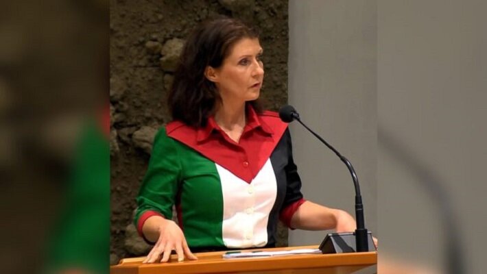 نماینده پارلمان هلند با لباس پرچم فلسطین رفت، با «هندوانه» برگشت+ فیلم
