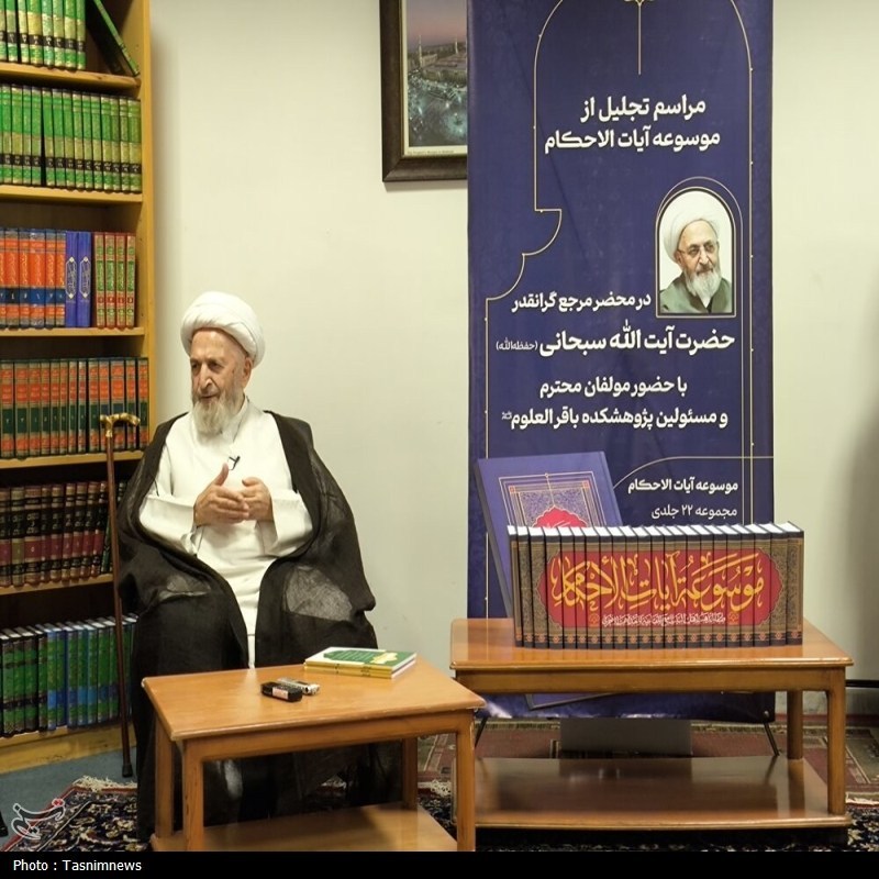 به گزارش بخش استانها در وبانگاه به نقل از خبرگزاری تسنیم از قم، آیتالله حاج شیخ جعفر سبحانی در آیین تجلیل از موسوعه «آیاتالأحکام» که در مؤسسه امام جعفر صادق(ع) قم و با حضور مؤلفان اثر و جمعی از مسئولان پژوهشکده باقرالعلوم(ع) قم برگزار شد، بر لزوم اتکا به قرآن کریم در استخراج احکام فقهی تأکید کرد.