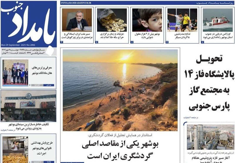مطبوعات دوشنبه هفتم مهر در استان بوشهر/بوشهر از مقاصد اصلی گردشگری ایران