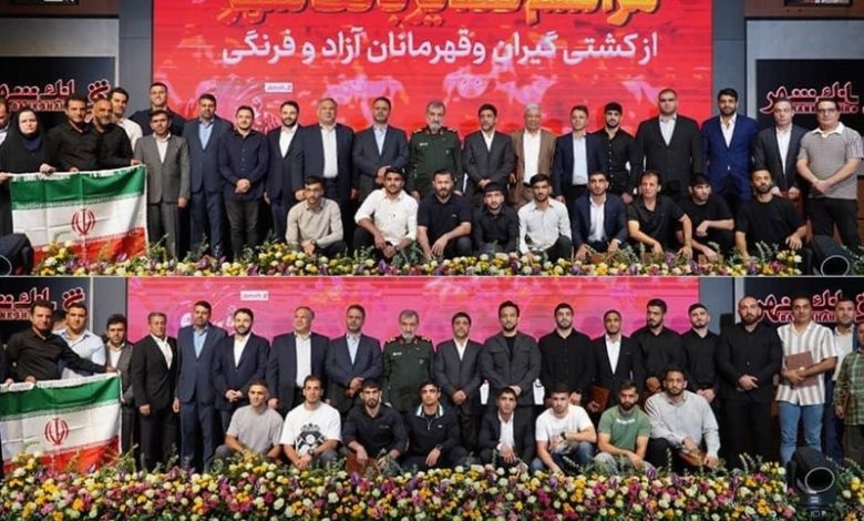 تجلیل از ستاره های کشتی در ساختمان مرکزی بانک شهر