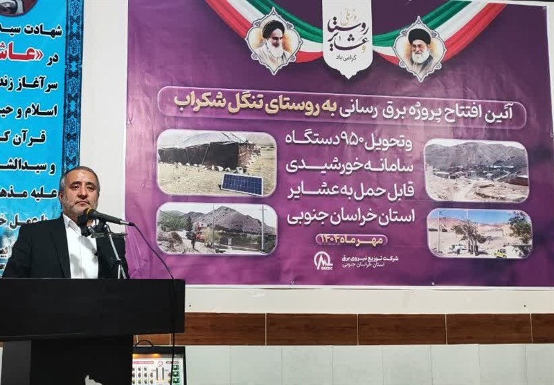به گزارش خبرنگار تسنیم از بیرجند، سید محمدرضا هاشمی، استاندار خراسان جنوبی، امروز در آیین افتتاح پروژه برقرسانی به روستای تنگل شکراب و تحویل 950 دستگاه سامانه قابل حمل برق خورشیدی به عشایر استان، با بیان اینکه خدمت در مناطق روستایی یک افتخار بزرگ برای مدیران نظام جمهوری اسلامی است گفت: اینکه امروز در دل یک روستا و در جمع مردمی صادق، پاکدست و پرتلاش حضور داریم، برای بنده یک افتخار بزرگ است؛ مردم روستا با دستان پینهبسته خود ستونهای نظام را نگه داشتهاند.