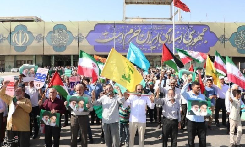 شرکتکنندگان با در دست داشتن پرچمهای ایران و فلسطین و پلاکاردهایی حاوی شعارهای «الموت لأمریکا» و «الموت لإسرائیل»، حمایت قاطع خود را از جبهه مقاومت و مردم مظلوم غزه ابراز کردند.