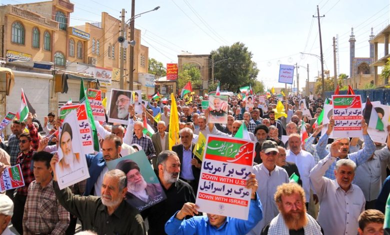 در این مراسم که با حضور اقشار مختلف مردم، مسئولان استانی، نیروهای نظامی و انتظامی و خانواده معظم شهدا برگزار شد، شرکتکنندگان با سردادن شعارهای کوبنده، انزجار خود را از اقدامات وحشیانه رژیم صهیونیستی در غزه و دیگر مناطق اشغالی ابراز داشتند. شعارهایی نظیر «مرگ بر اسرائیل»، «مرگ بر آمریکا»، «فلسطین پیروز است» و «حمایت از غزه، وظیفه هر مسلمان» در فضای شهر طنینانداز بود.