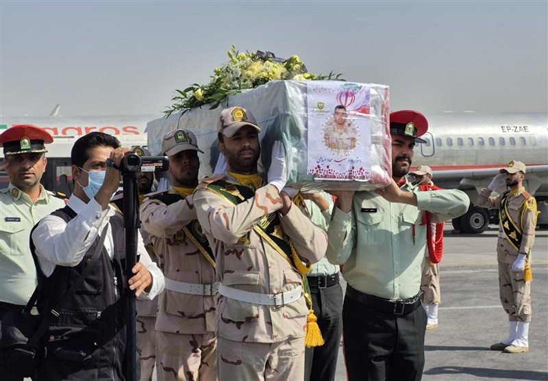 استقبال از پیکر مطهر شهید مرزبانی «سجاد صیامی» در فرودگاه مشهد+تصاویر