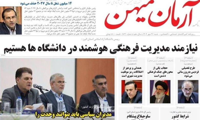 عناوین روزنامههای البرز در روز شنبه 26 مهرماه/ مدیریت هوشمند در دانشگاهها