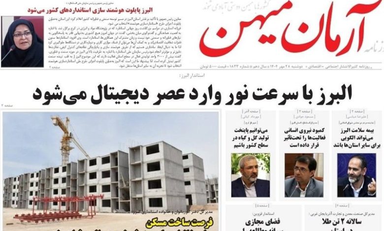 عناوین روزنامههای البرز در روز دوشنبه 28 مهرماه