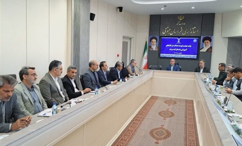مسئول قرارگاه جهادی شهید کاوسی در جلسه نهضت توسعه عدالت در فضاهای آموزشی خراسان جنوبی با قدردانی از استاندار بهخاطر مدیریت برنامه موفق تجاری با حضور تجار افغانستان بر اهمیت مشارکت واقعی مردم در مدرسهسازی و پروژههای آموزشی تأکید کرد و از پیشرفت پروژههای چمن مصنوعی و آبرسانی با همکاری خیرین و آموزشوپرورش خبر داد.