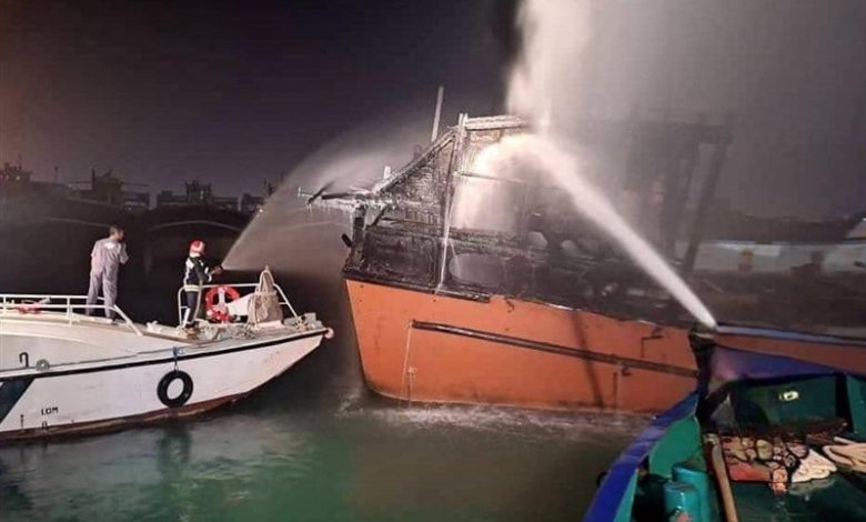 حریق یک لنج باری در بندرچارک / عملیات اطفا ادامه دارد