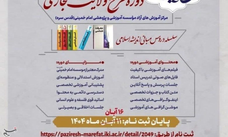 مهلت ثبت نام دوره مجازی طرح ولایت تا 16 آبانماه تمدید شد