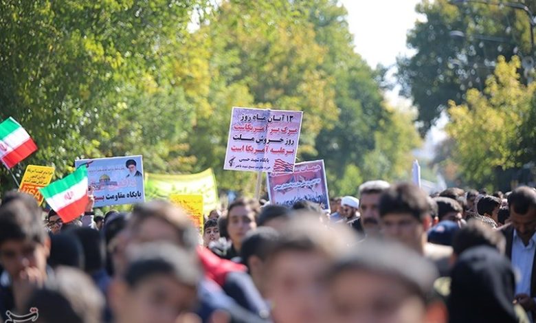 راهپیمایی یومالله 13 آبان در کردستان با حضور پرشور مردم ولایتمدار و دانشآموزان انقلابی در مسیرهای مختلف برگزار و فرزندانِ این دیار در گفتوگو با تسنیم ضمن اعلام وفاداری به آرمانهای نظام مقدس جمهوری اسلامی و اندیشه امام خمینی (ره)، اوج خشم و نفرت خود نسبت به استکبار جهانی را به نمایش خواهند گذاشت.