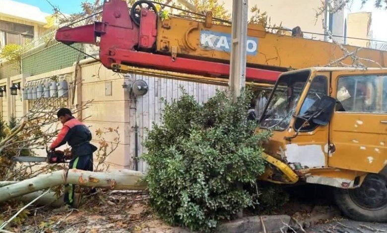 جرثقیل سرگردان در مشهد؛ برخورد زنجیرهای با چند خودرو و دیوار منازل مسکونی