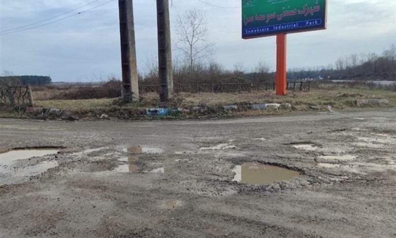 چالههای جاده شهرک صنعتی صومعهسرا سرمایهگذاران را زمینگیر کرد