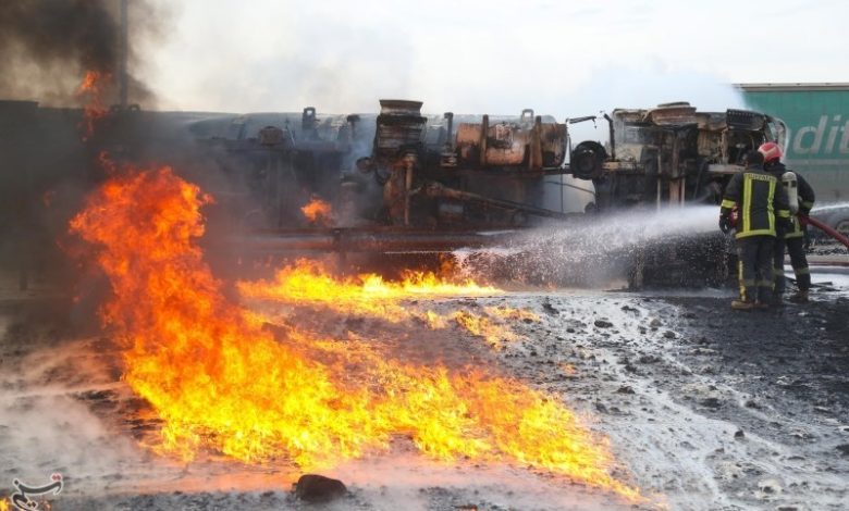 انفجار تانکر سوخت در جاده شهرک صنعتی یزد با یک کشته و 8 مصدوم