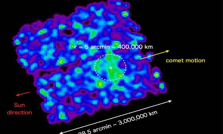 این تصویر با دادههای بهدستآمده از ماموریت «ایکسامام-نیوتون» آژانس فضایی اروپا قابل مقایسه است که پیشتر تابش پراکنده پرتو ایکس را در اطراف یک دنبالهدار نشان داده بود.