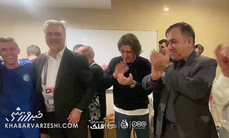 حضور تاجرنیا در رختکن استقلال پس از پیروزی مقابل المحرق