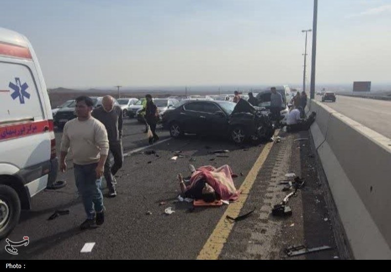 تصادف زنجیرهای در اتوبان قم به تهران با 5 مصدوم