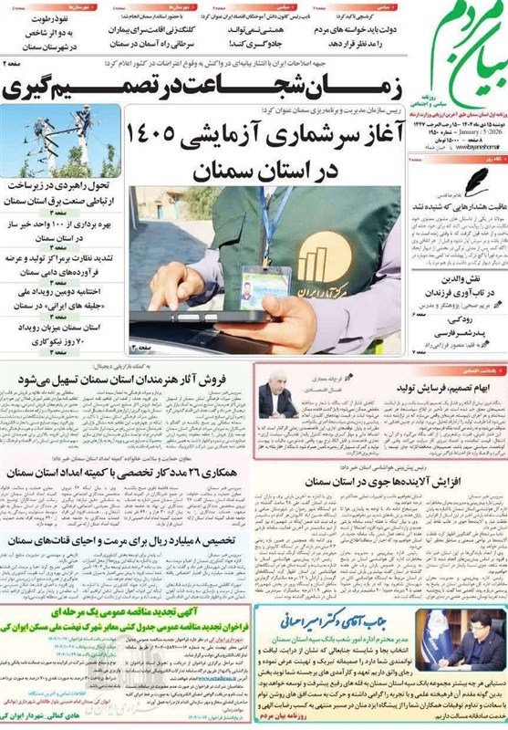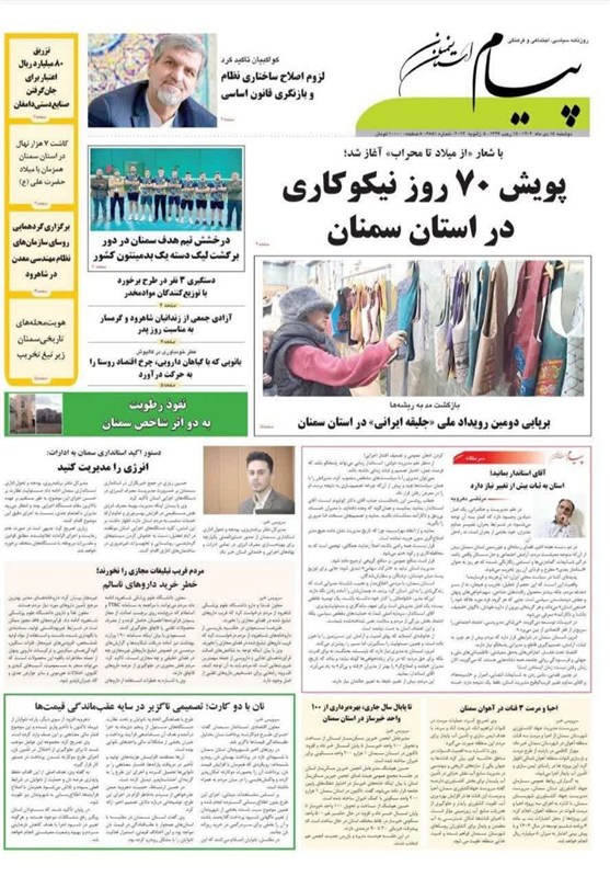 دو شنبه 15 دی در استان سمنان (بیان مردم) و (پیام استان سمنان) منتشر شد، این مرور مطبوعاتی بازتابدهنده مهمترین رویدادها، چالشها و تحولات اقتصادی، اجتماعی و سیاسی استان است.