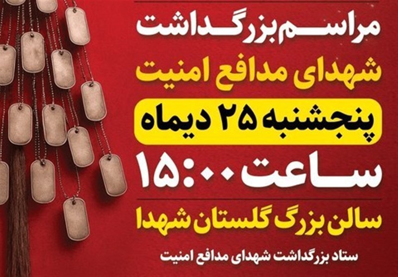 به گزارش بخش استانها در وبانگاه به نقل از خبرگزاری تسنیم از اصفهان، بر اعلام ستاد بزرگداشت شهدای مدافع امنیت، مراسم بزرگداشت شهدای امنیت که در اغتشاشات اخیر در اصفهان به درجه رفیع شهادت نائل آمدند، فردا پنجشنبه ساعت 15 در گلستان شهدای اصفهان برگزار خواهد شد.