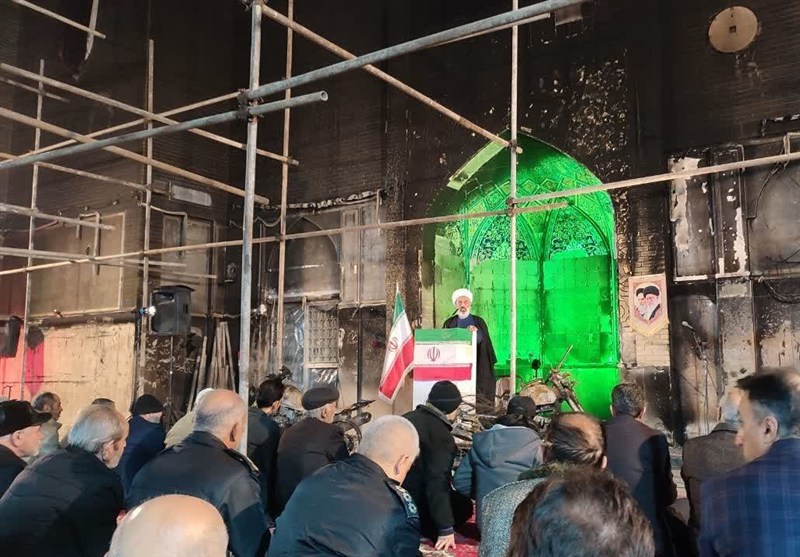 اقامه نماز جمعه پرند در مسجدی که اغتشاشگران آتش زدند