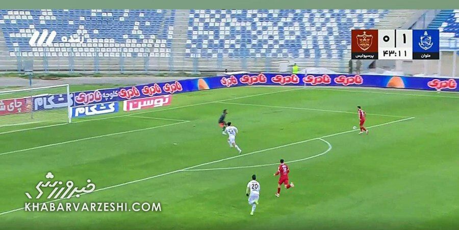 هافبک پرسپولیس در لحظات پایانی نیمه نخست دیدار با ملوان موقعیت مناسبی برای گلزنی و به تساوی کشاندن نتیجه داشت که این فرصت طلایی از دست رفت.