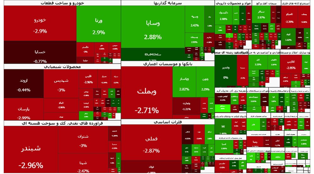 بازار سرمایه در واپسین روز معاملاتی هفته با افت قابل توجهی روبهرو شد و شاخص کل بورس اوراق بهادار تهران ۴۰ هزار و ۷۷۲ واحد از ارزش خود را از دست داد. در نتیجه این کاهش، شاخص کل در پایان معاملات به سطح سه میلیون و ۸۰۶ هزار و ۷۶۷ واحد تنزل پیدا کرد. لازم به ذکر است که بازار روز پیش از آن با رشد ۲۴ هزار واحدی همراه شده بود، اما این روند مثبت دوام نیاورد و اکثریت روزهای معاملاتی اخیر با نزول همراه بوده است.