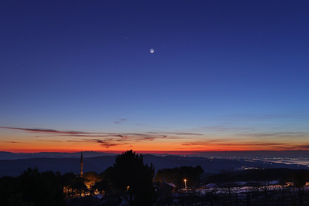 هلال ماه و همنشینی با سیارات درخشان در شامگاه زمستانی